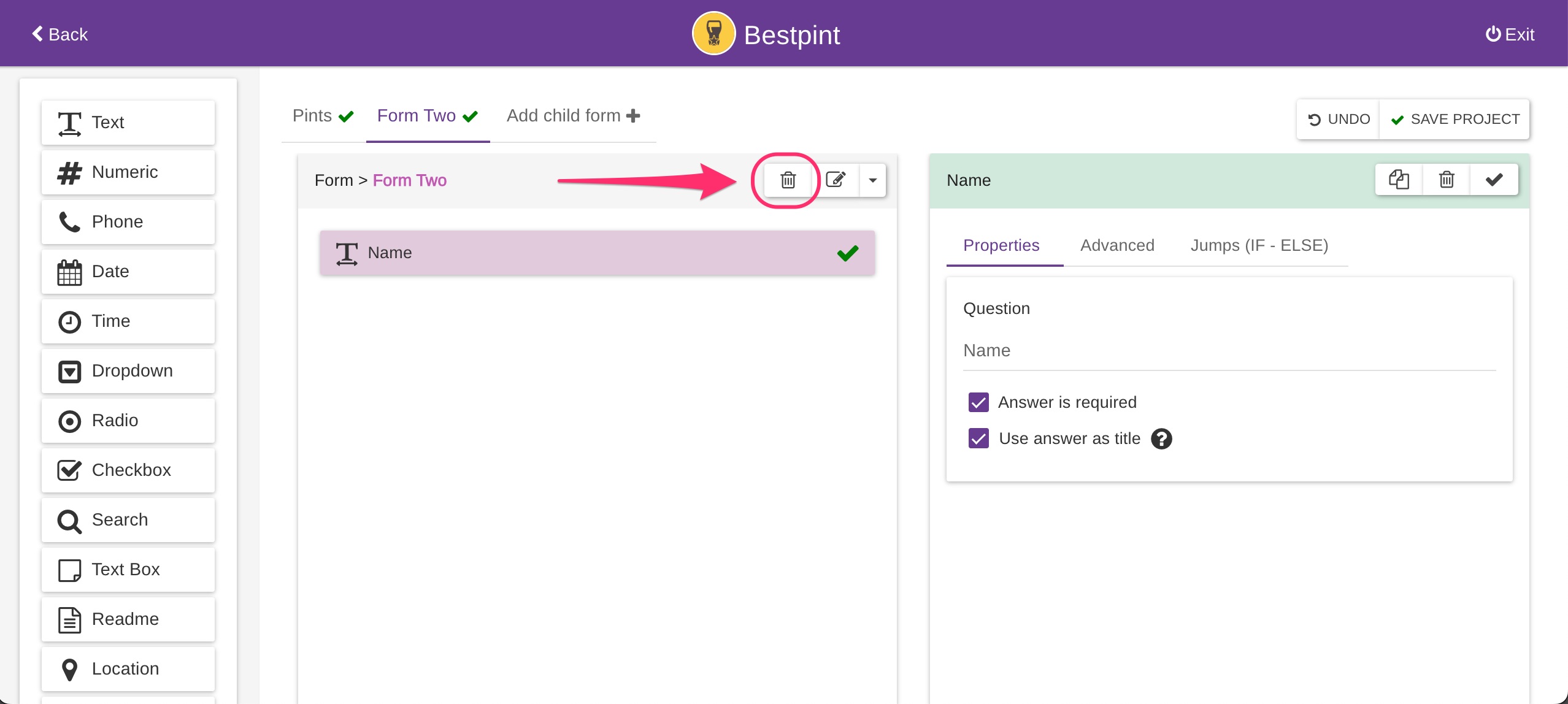 However, please note that forms can only be deleted in reverse order, starting from the most recently added one.