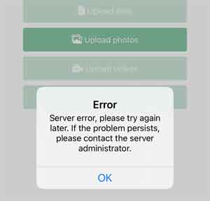The first error message says “Server error, please try again later. If the problem persists, please contact the server administrator”