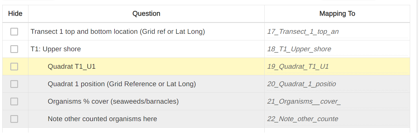 Thank you for your help, that seems to be working now. However, when duplicating the groups (quadrat) within each branch (transect zone) there is an error: ‘Too many titles (branch)’. Have I exceeded the question limit?