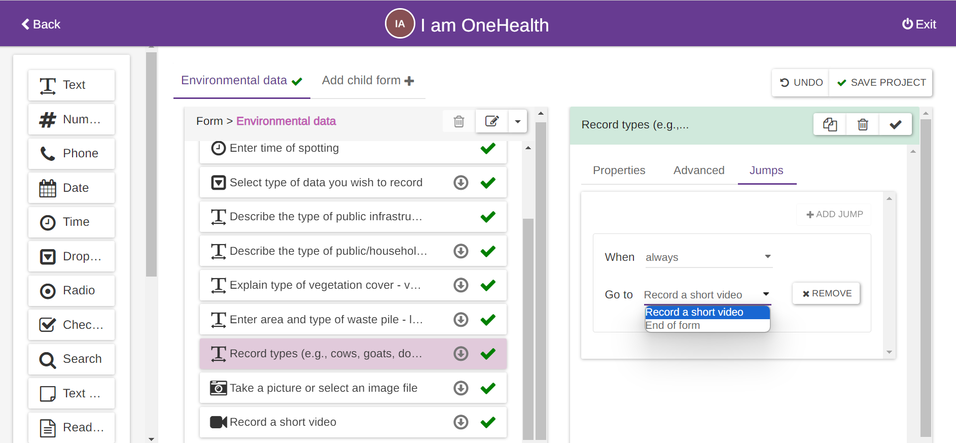 Hello, A specific data field that is already created is unavailable in the ‘Jump’ tab under ‘Go to’ dropdown list. Please see attached image of a screengrab. This is happening even after saving the project after every new list created. For example, I have already created a data field to submit an Image file. While some of the options allow the question to ‘Jump’ to the ‘Add an image file’ option, the last option, doesn’t allow to ‘Jump’ to the ‘Add an image file’. This is also happening to the first Test-based entry in the screen shot.