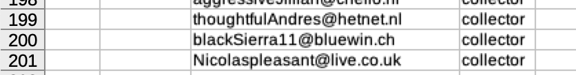 While uploading csv file having 248 gmail ids as collectors, it is taking only 99 gmails ids as collectors. How can I upload all 248 gmail ids as collectors.