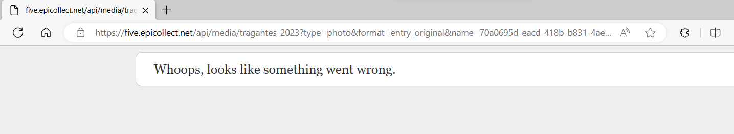 Tengo un inconveniente al momento de ingresar al link que genera la aplicacion para poder visualizar la imagen que fue tomada en campo, me aparece un error. Adjunto imagen del mensaje que aparece.